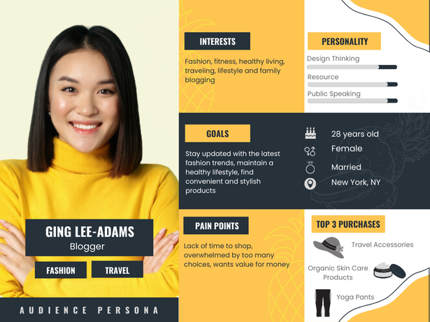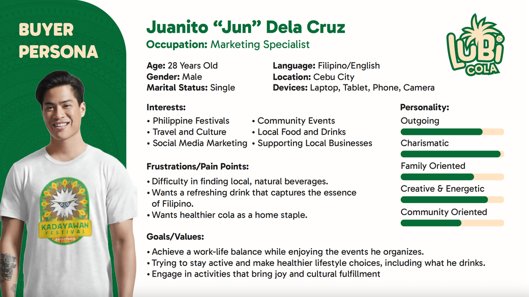 WHAT I DID: I created buyer personas to reflect the diverse customer base of both brands, incorporating vibrant designs and engaging layouts. For Pineapple Clothing, I developed a persona that highlights the interests of fashion and lifestyle bloggers. For Lubi Cola, I crafted a persona focused on a marketing specialist with an affinity for local festivals, blending creativity with brand values to drive customer connection.